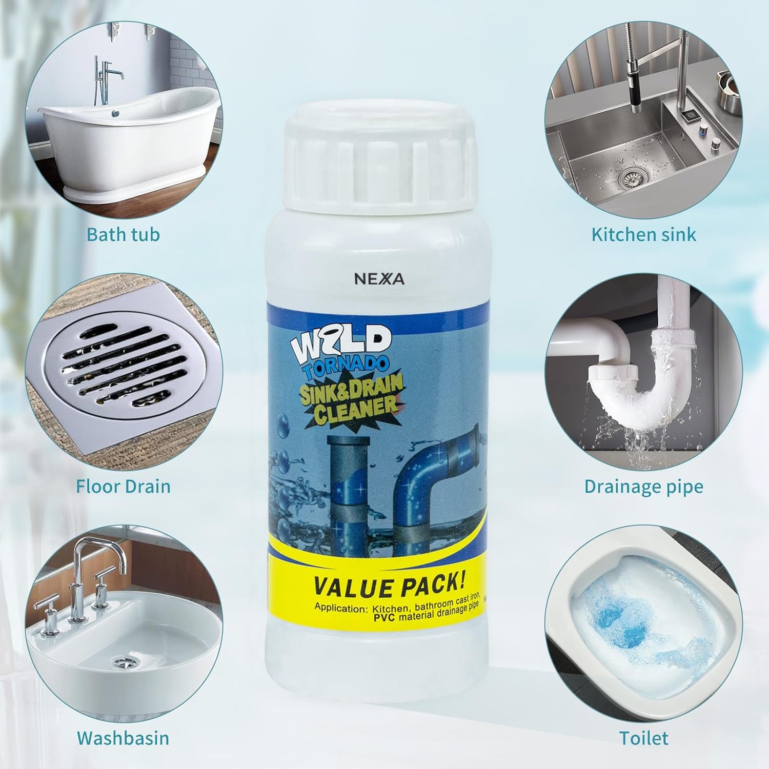 Una solución revolucionaria diseñada para hacer que el cuidado de tus desagües sea fácil y sin esfuerzo. Ya sea una obstrucción persistente, malos olores, acumulación de suciedad o manchas amarillas difíciles, WildTornado™ lo elimina todo con facilidad.